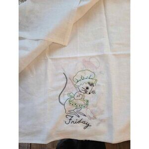 Adorable day of the week vintage inspired tea towels. 100% cotton, still have tags and have not been used or washed. 7 days with 7 cute embroidered mice.