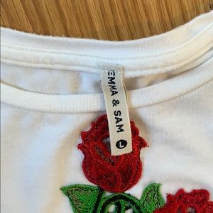 Very pretty embroidered flower tee. In perfect condition. This is a size large but I am usually a size xs and this fit likes regular T-shirt. Purchased at LF.