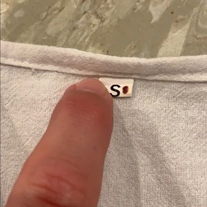 Embroidered tee. Size small. About 21” long, 19” pit to pit. No fabric tag, but this feels like cotton to me. Lightweight, can roll sleeves, or wear them longer. Adorable bohemian embroidery.