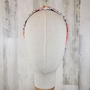 Embroidered design with baby blue, orange, neon pink, yellow, tan and white