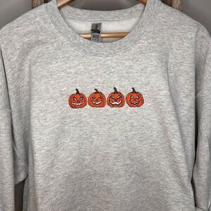Embroidered Pumpkin Crew Neck Sweatshirt