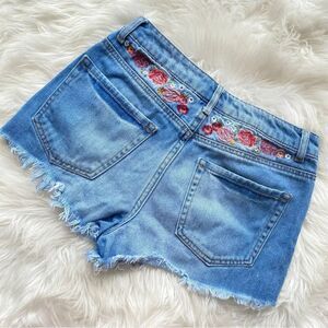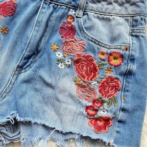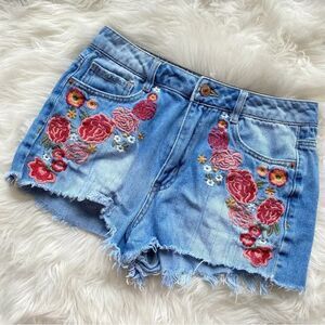 Embroidered Floral Denim Shorts