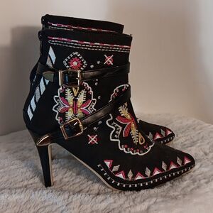 These beautifully embroidered Stiletto ankle boots are a 37 (6.5). They zip up the back. 4" Stiletto heel. In like new condition.