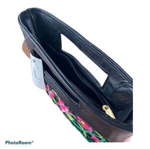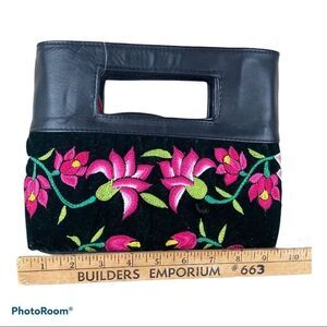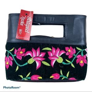 NWT Xhantae Beautiful Hunter green suede with black leather handles and embroidered flowers, Ready to Ship!