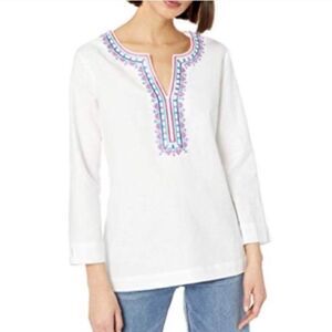 Embroidered linen cotton tropical top beach wear