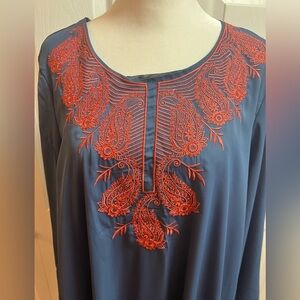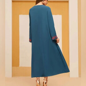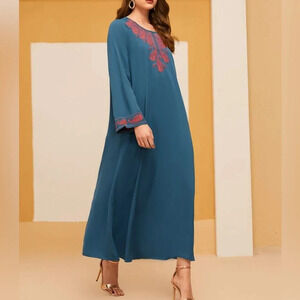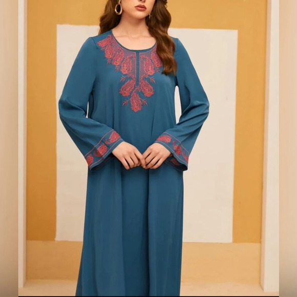 Embroidery • Round Neck • Regular Sleeve, elegant navy blue Dress Size L8/10 #abaya