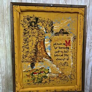 Embroidery Framed Patriotic Image, William Penn "Governed by God" vintage