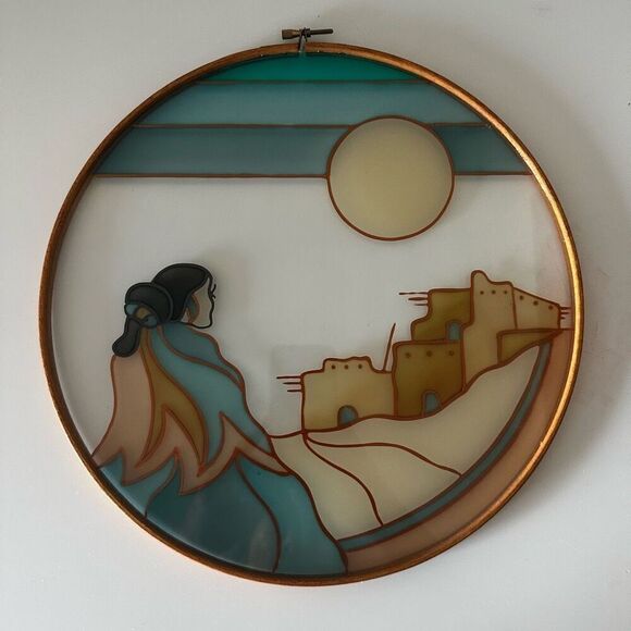 Embroidery Hoop With Handmade Plastic/Glass Design, Rare, 12” D, Very Unique And Good Condition, I’m Not Exactly Sure How This Is Made, There Is A Raised Texture Surrounding The Design, Seems Like A Kind Of Paint
