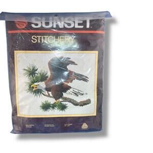 Up for sale is a Sunset Stitchery Embroidery Kit featuring a stunning Majestic Eagle design. This complete kit allows you to create a beautiful piece of art that fits a 16x20” frame, perfect for your home decor or as a thoughtful gift.