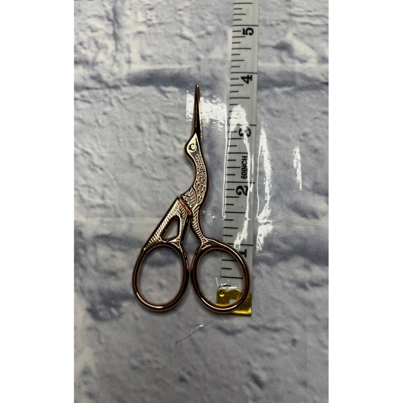 1 pair of rose gold Embroidery scissors. Sublime smooth cutting. Stork