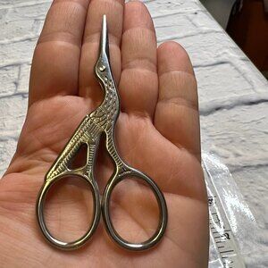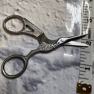 1 pair of silver Embroidery scissors. Sublime smooth cutting. Stork