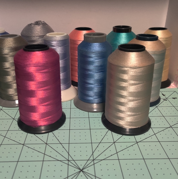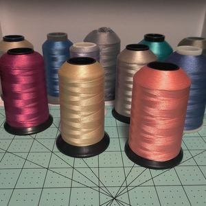 11 colors different Each spool of thread came with 5500 meters, some spools are almost new and 2 have less than 50% Madeira and OESD