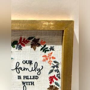 Wood framed detailed embroidered art Unbranded Note flaws on frame; none on picture 8” W x 10” T
