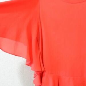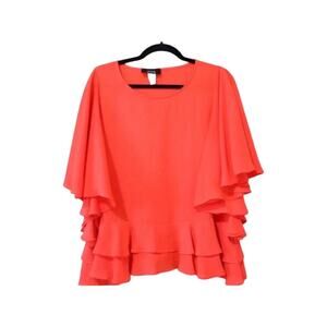 Blouse with ruffle end and bell sleeves.