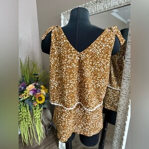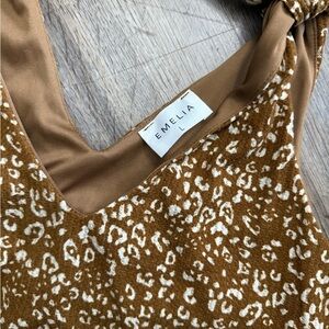 In like new condition. No flaws or signs of wear. Size large fits 12/14. Tiered bodice. Very soft.