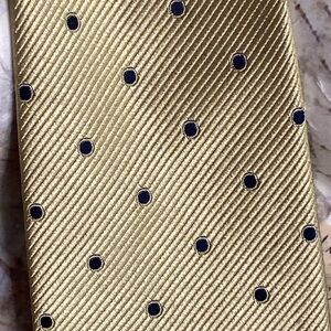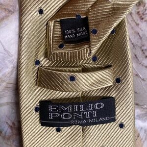 Emelio Ponti 100% silk gold with navy dots Neck Tie