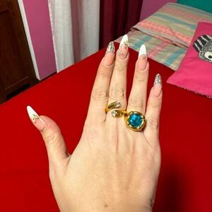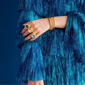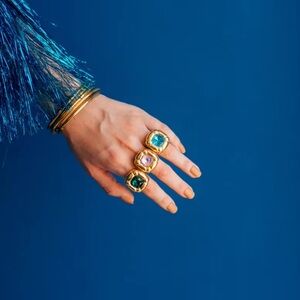 Enhance your style with this elegant gold ring set featuring vibrant gemstones. Perfect for any occasion.