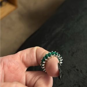 Lab Created Emerald Band, Emeralds encircle the whole, set in sterling silver with platinum over. Size 8