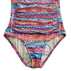 Emerald Bay Multicolored Twist-Front Side Ruched One Piece Swimsuit Size 12