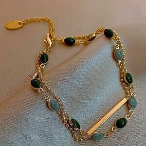 Emerald Beaded Gold Plated Chain Link Minimalist Bracelet