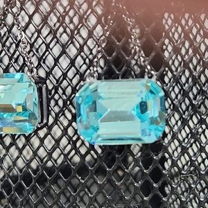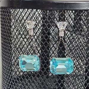 Emerald Cut 14.20ct Sea Blue Aquamarine Gunmetal Statement Dangle Earrings