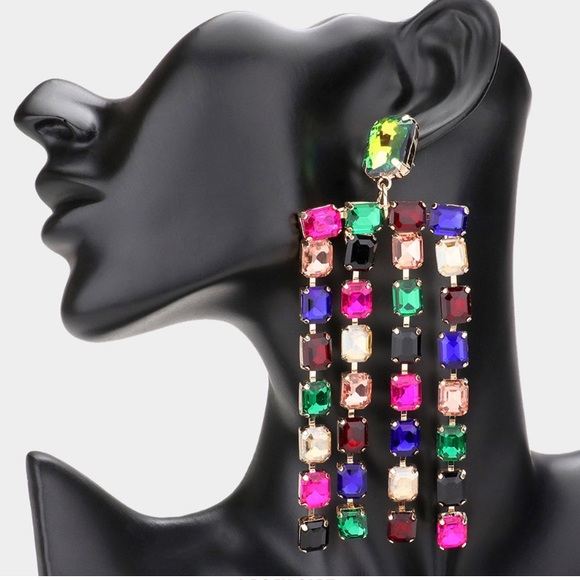 Emerald Cut Stone Fringe Evening Earrings