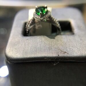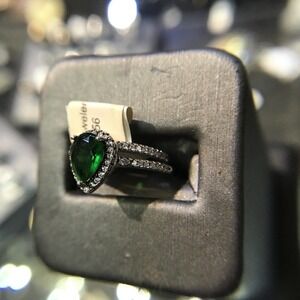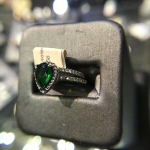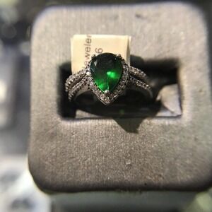 Emerald Diamond Ring Sz4.75 Teardrop Silver 925 (All Stones Simulated)