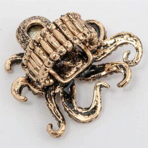 Dive into deep-sea glamour with this mesmerizing octopus statement ring, a bold accessory designed to captivate. Featuring an intricately detailed octopus encrusted with vivid Gold crystals, the ring coils gracefully around your fingers, creating a striking visual impact. At its crown, a large faceted teal gemstone mimics the shimmer of the ocean, adding depth and mystique to the piece. Crafted in an antique gold-tone setting, this ring is a perfect blend of marine fantasy and vintage edge—ideal for ocean lovers, collectors, or anyone ready to make waves with their style.