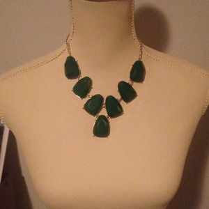 Gorgeous emerald and gold statement necklace with matching earrings. Brand New with tags. Perfect accessory for any occasion. Sparkles beautifully under any lighting. No trades, no Paypal. Price reduced from $20 to $15 on 4/23. Price is firm and final.