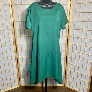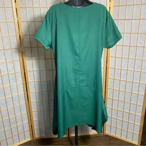 Pretty green midi dress - no tags - looks hand made. Unique skirt portion design - like a hammerhead shark! Flows really nicely. The material is very lightweight emerald green. In excellent condition.
