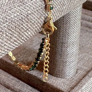 Emerald Green CZ 18K Gold Stainless Steel Tennis Bracelet May Birthstone Dainty