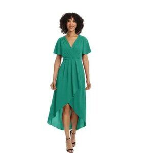 Emerald Green Chiffon Wrap Dress