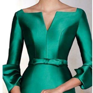 Sheath / Column Cocktail Dresses Kentucky Derby Dress Formal Knee Length 3/4 Length Sleeve V Neck Satin with Sash / Ribbon