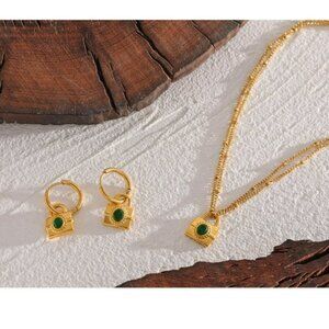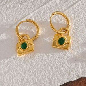 Emerald Green Cubic Zirconia 18K Gold Plated Lock Dangle Earrings NEW