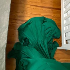 Emerald green dress, medium sized, very elegant. Can be used for prom/ homecoming, or any fancy event. It has a beautiful tail that trails it from the back and it accentuates your curves very nicely!