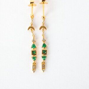 Party Earrings Elegant Earrings Emerald Jewelry Emerald Dangle Earrings Green Earrings Gift for Her Christmas Gift for Her Goddess Earrings Celestial Jewelry Moon Earrings gorjana inspired emerald green earrings emerald drop earrings green stone earrings gold dangle earrings crescent moon earrings celestial earrings moon jewelry statement earrings lightweight earrings non tarnish earrings hypoallergenic earrings cubic zirconia earrings gift for her emerald jewelry green gemstone earrings