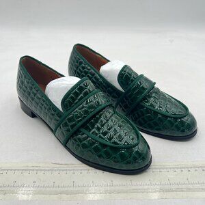 Emerald Green Embossed Almond Toe Slip On Moccasins Low Heel Comfy Formal Shoes