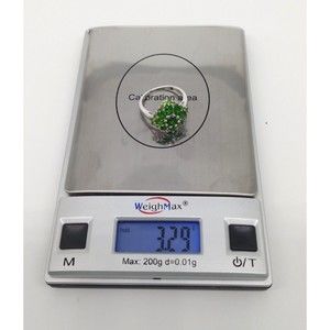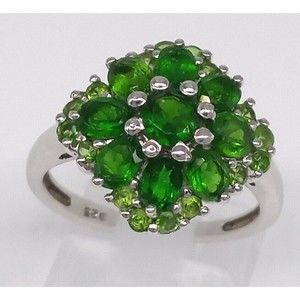 Emerald Green Gemstone Ring Cluster 925 Sterling Silver Size 7 Designer Sparkly!