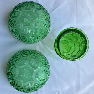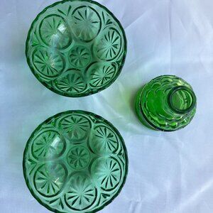 Selling all 3 pieces as a set. Bowls and jar are slightly different shades of emerald green.