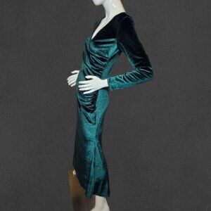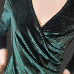 Emerald Green Length Bodycon Velvet Feel Dress sz L