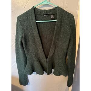 Add a pop of color to your wardrobe with this beautiful emerald green Moda ruffle sweater! This sweater is in excellent condition and has a stylish ruffle detail that adds a touch of femininity. It has a single hook-and-eye closure at the waist.