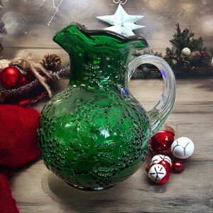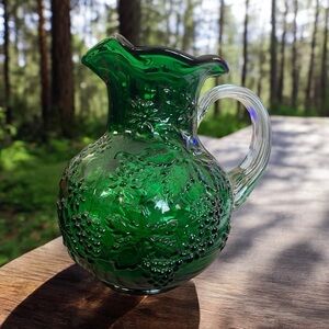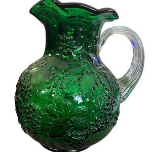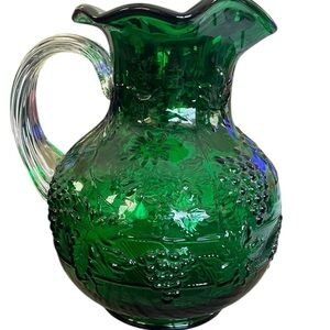 Emerald Green Mosser Grape And Floral Pattern Glass Pitcher