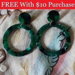 This listing is for a pair of emerald green, mottled lucite earrings. They measure approximately 2" long. They are brand new, with card attached. They will arrive in gift bag. Buy with confidence, careful packaging promised. I love to bundle. I have more styles available in other colors.