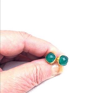 Emerald Green Onyx Faceted Studs, Gold, Square Bezeled, 22k Vermeil, NWT