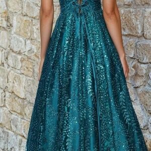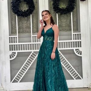 Size 1 emerald green prom dress with lace up back by Blondie Nites. Worn once.