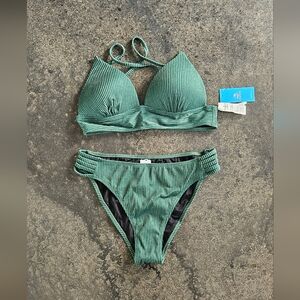 Dive into style with this stunning emerald green ribbed bikini set. Perfect for a day at the beach or lounging by the pool. The color of this bikini is so beautiful! NWT