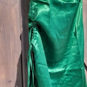 Emerald Green Satin Spaghetti Strap Drawstring Detail Dress Size S