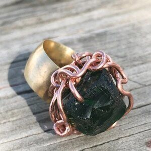 Emerald Green Sea Glass Copper Brass Ring Custom Cocktail Dinner Statement Boho
