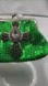 Emerald Green Sequin Change Purse Silver Cross & 18mm Sparkling Oval Ginger Snap
