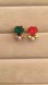 New, gorgeous + playful mismatched stud earrings artisan-made with siam red + emerald green hearts, simulated pearls and iridescent ruby red +peridot green crystals